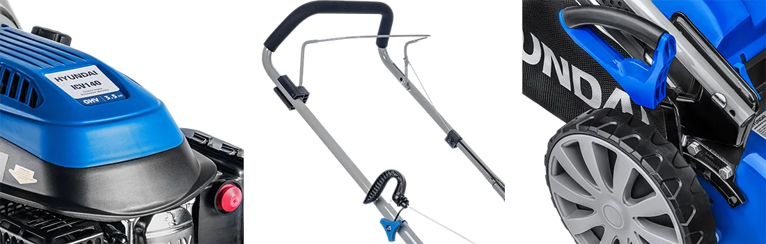 Доглядати за великим газоном або підстригати траву в саду допоможуть бензинові несамохідні газонокосарки HYUNDAI. Двигун приводить в рух лише ріжучі елементи, але не колеса, тому витрачати велику кількість бензину при роботі не доведеться.
